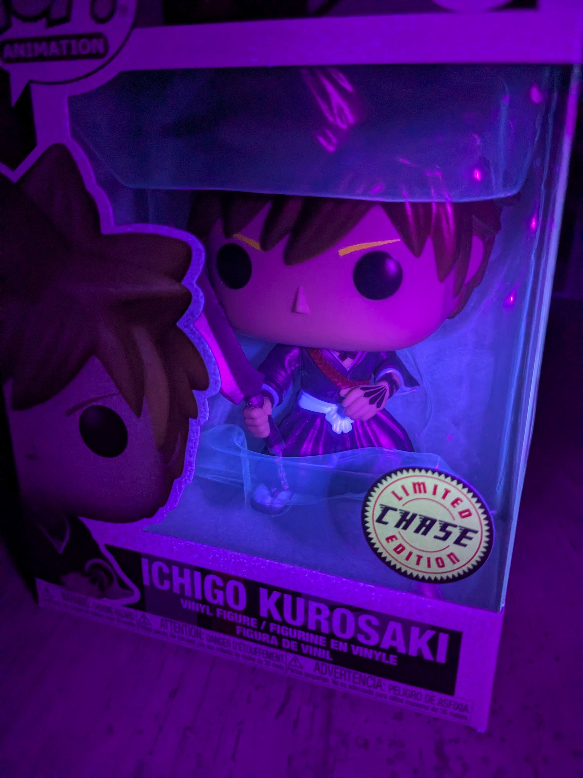 Description de l'attaque/pouvoir : "La rareté de la puissance ! Cette Funko Pop Ichigo (Chase) n'est pas seulement rare, elle incarne une facette unique de la puissance d'Ichigo. Peut-être une aura de reiatsu brillante ou un détail de son Hollow intérieur, elle est la preuve de son évolution constante. Une figurine qui brille de mille feux !"