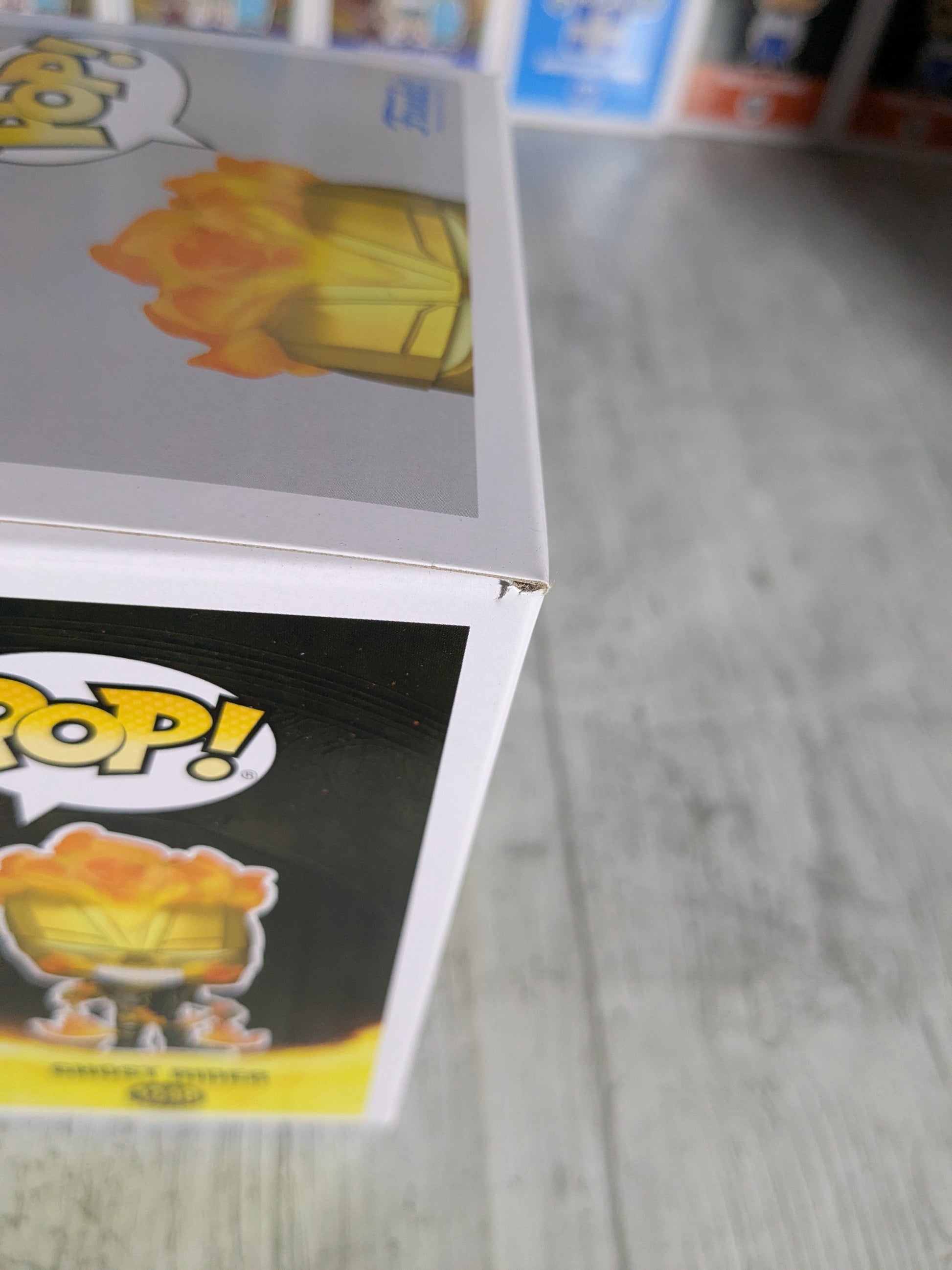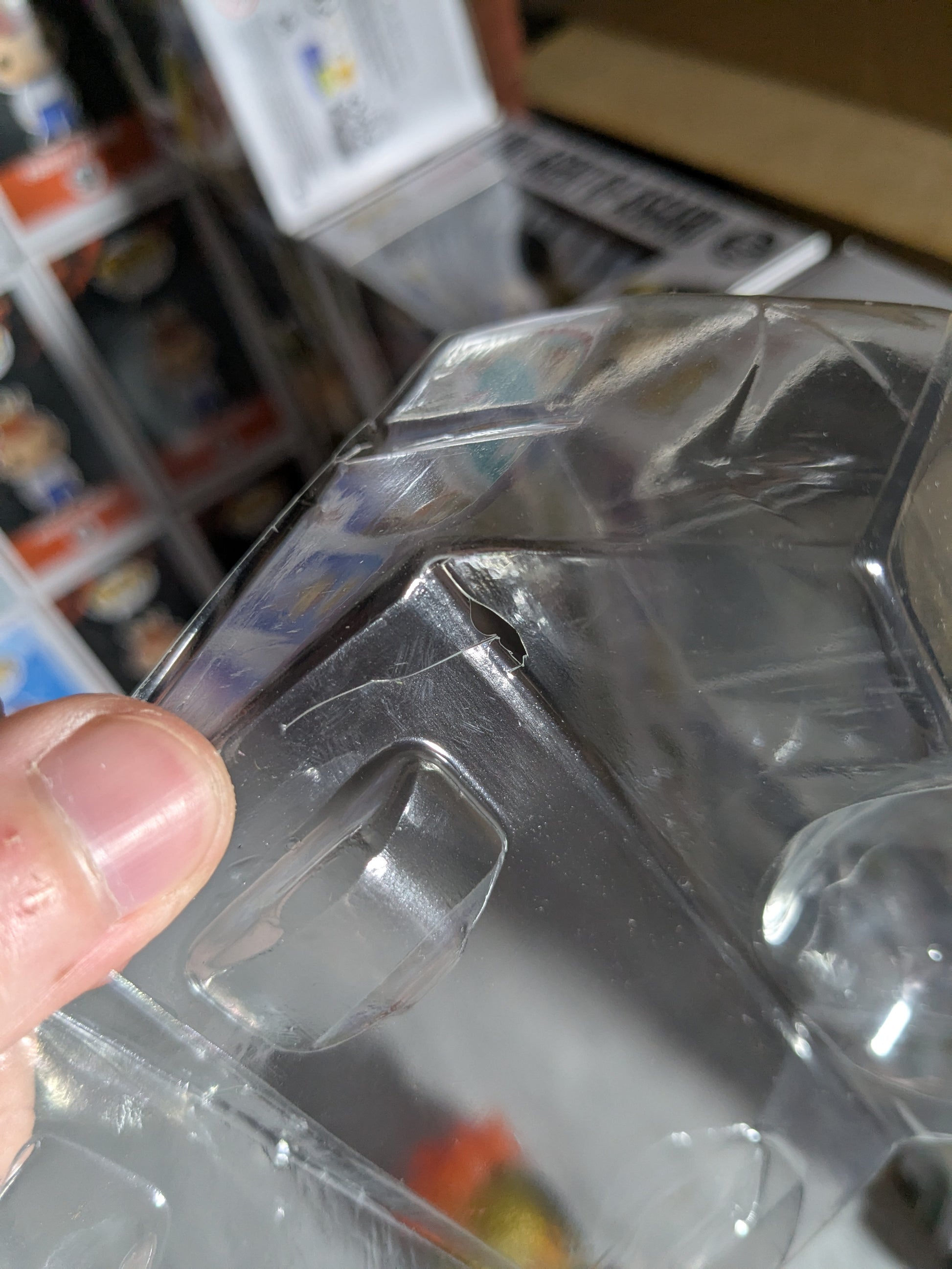 Boîte avec des défauts, le contenu a été ouvert pour vérification, le plastique maintenant la figurine est arrivé abîmé,