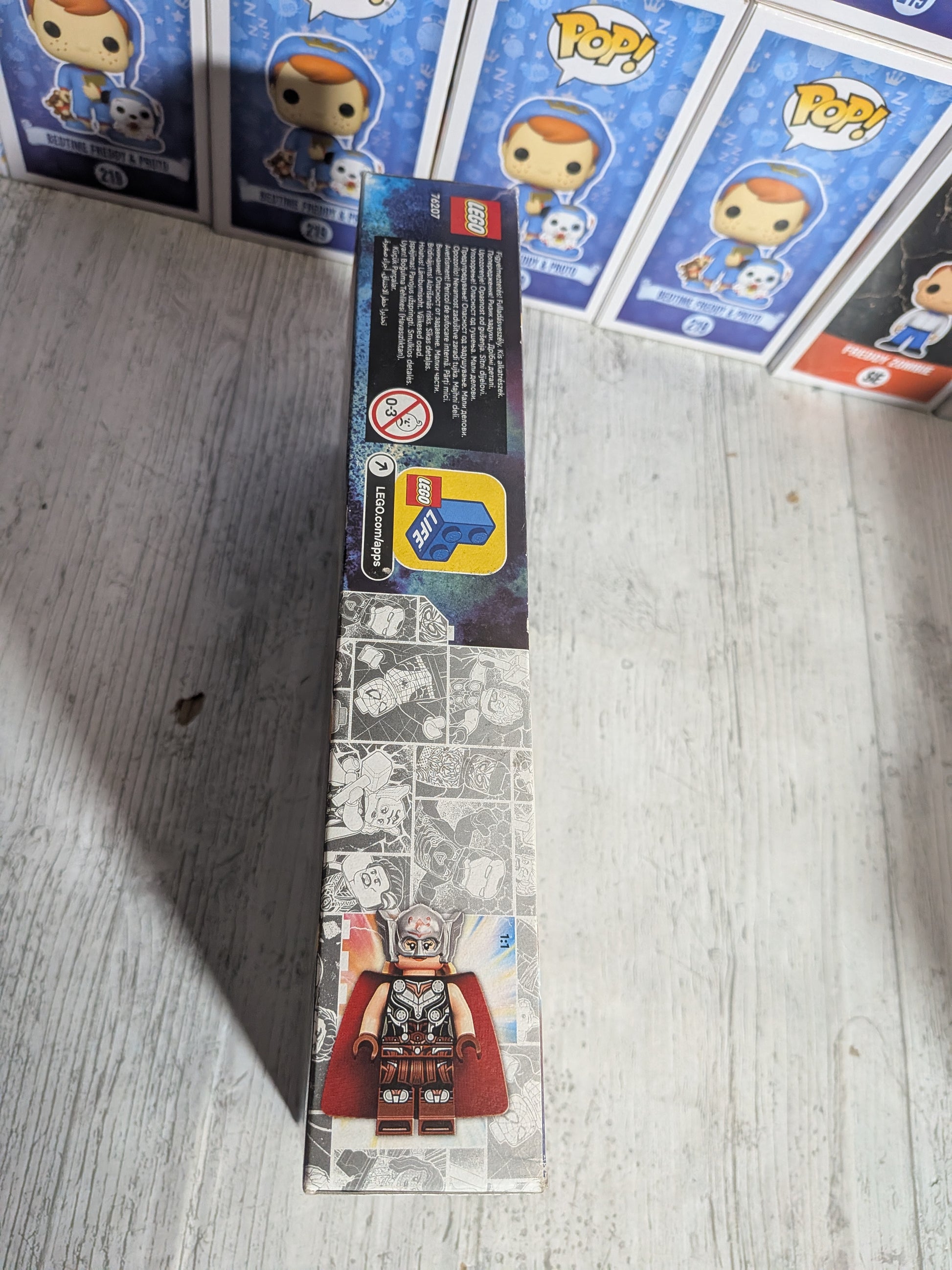 Figurines : 3 figurines (Thor avec sa hache Stormbreaker, Mighty Thor avec le marteau Mjölnir reconstitué, et Gorr le Boucher des Dieux avec son épée).